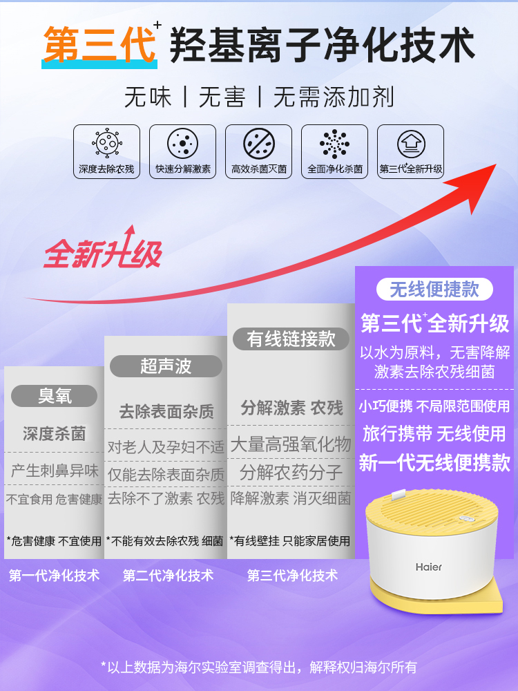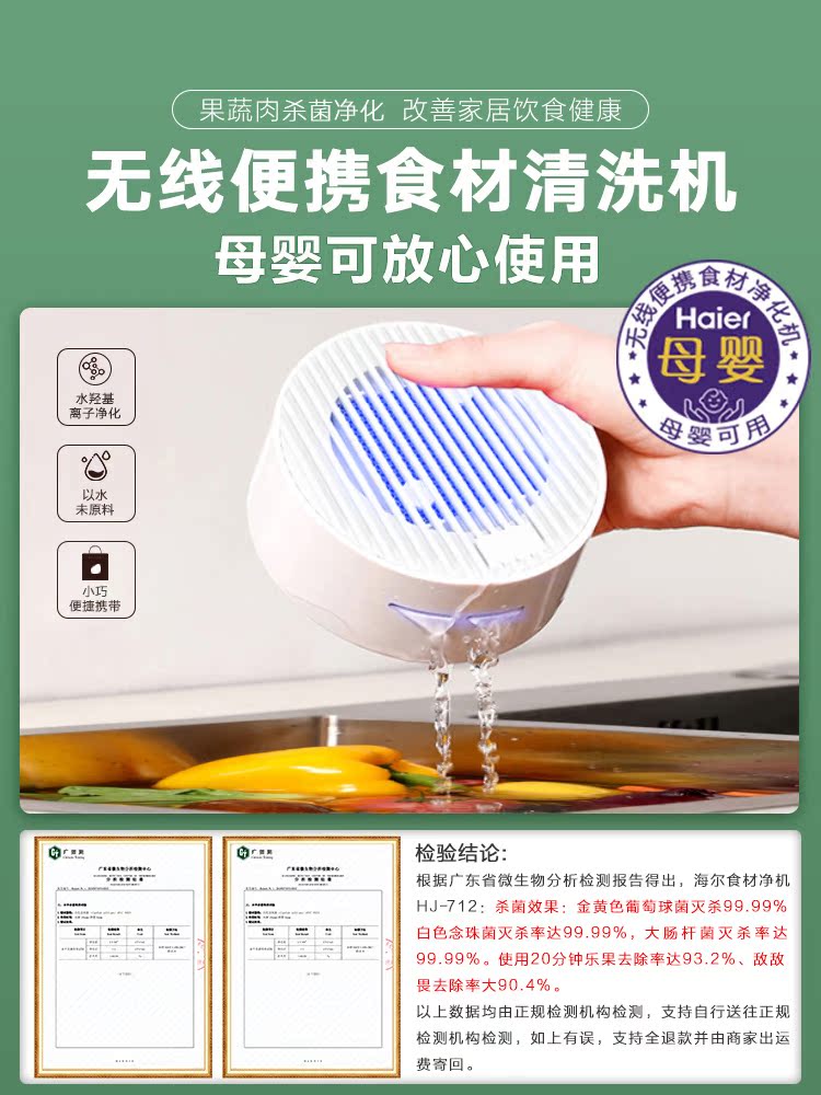 Haier Fruit and Fruit Cleaner Home Intelligent Beyond Sonic Washing Machine Food Ingredients Net Food Purifier Germicidal Bacteria Remover