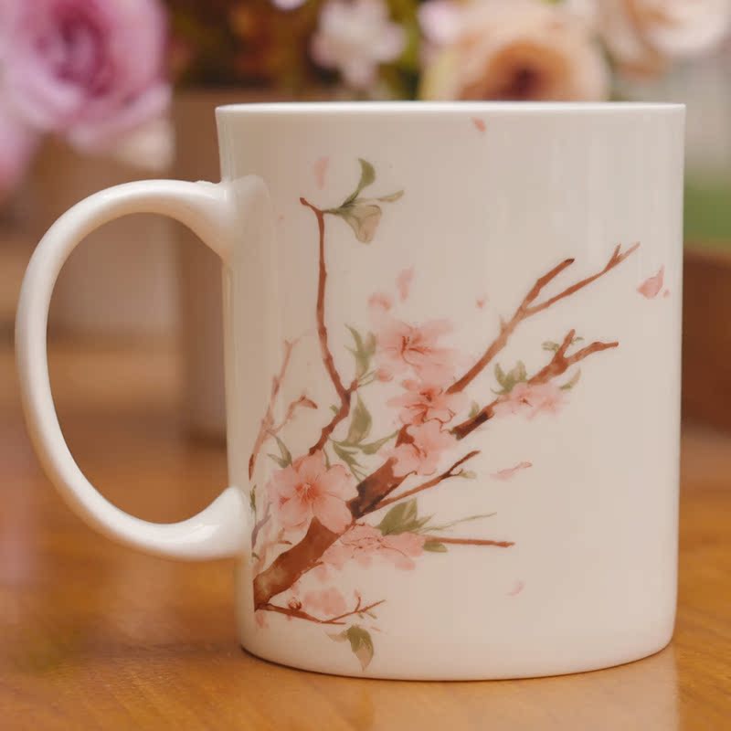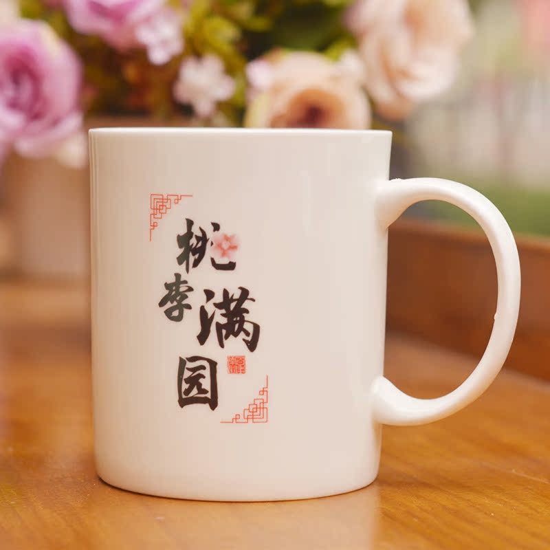 Nankai University School Song Mark Cup Bone China Porcelain Tea Cup Students Business Office Large Capacity Peach Li Full Garden