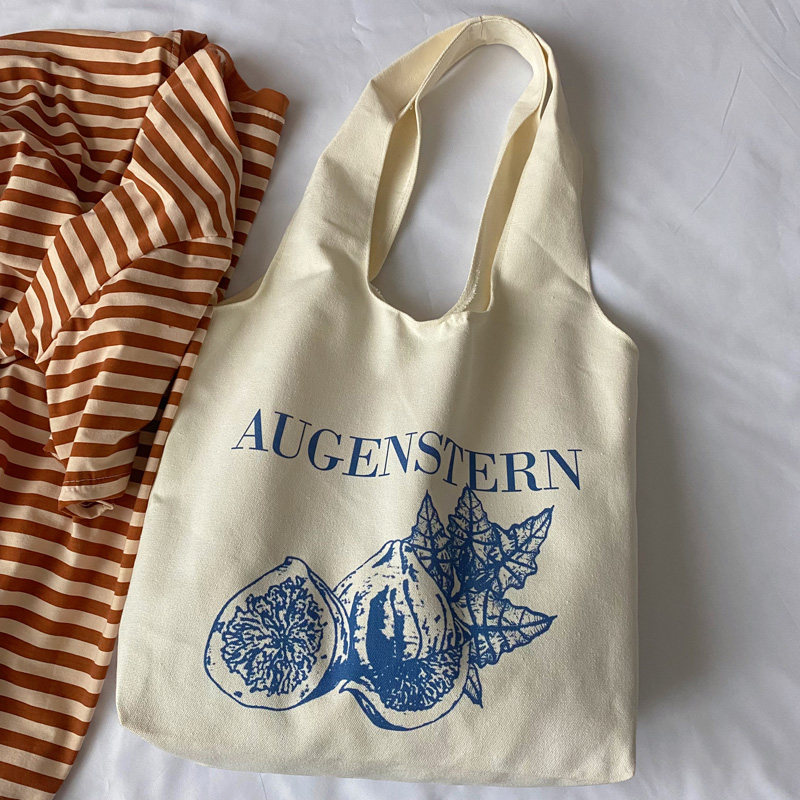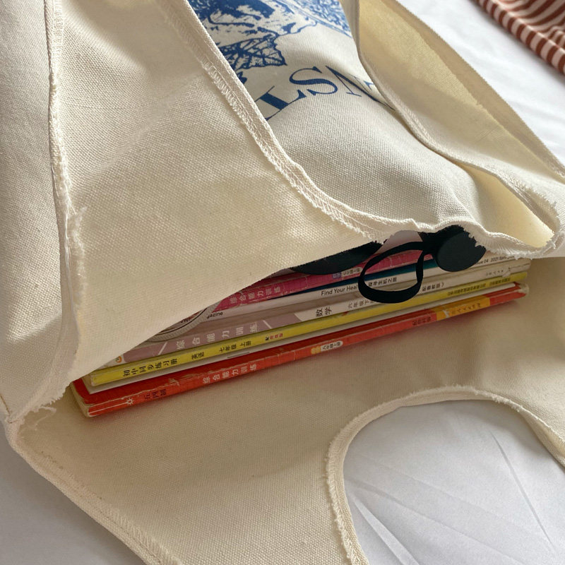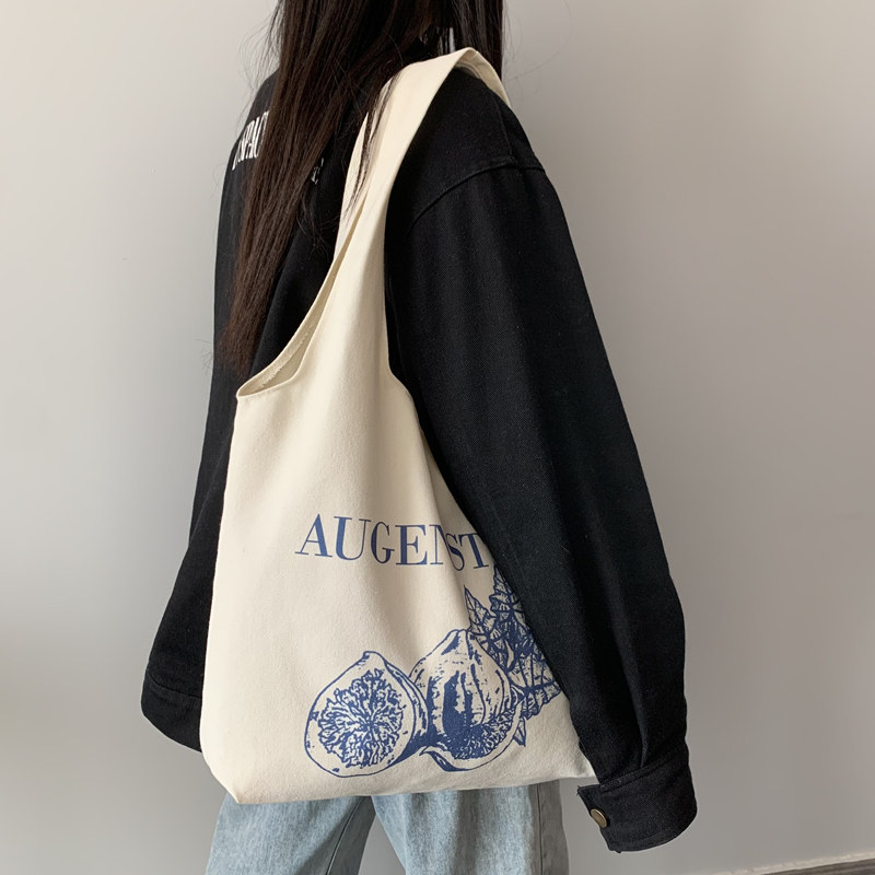 Japanese original illustration design tote illustration canvas tote bag simple and versatile literature and art large capacity shoulder bag