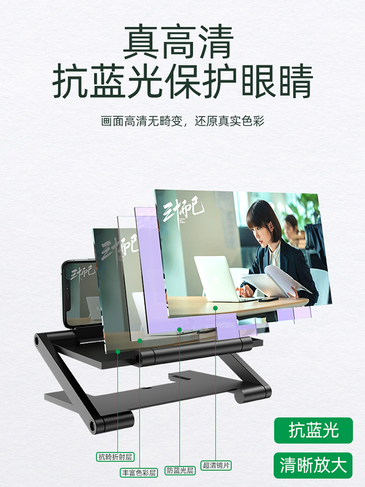 4K horizontal vertical screen lifting mobile phone screen amplifier mirror high-definition enlarge screen mirror ultra-clear anti-blue sloth physics remote control drama electric video 6D shake-up projection 3D desktop stent holder