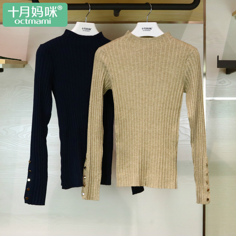 October Mommy Maternity Dress Spring and Autumn New Maternity Knitwear Thin Section Sweater Slim Bottom Shirt Versatile Elasticity
