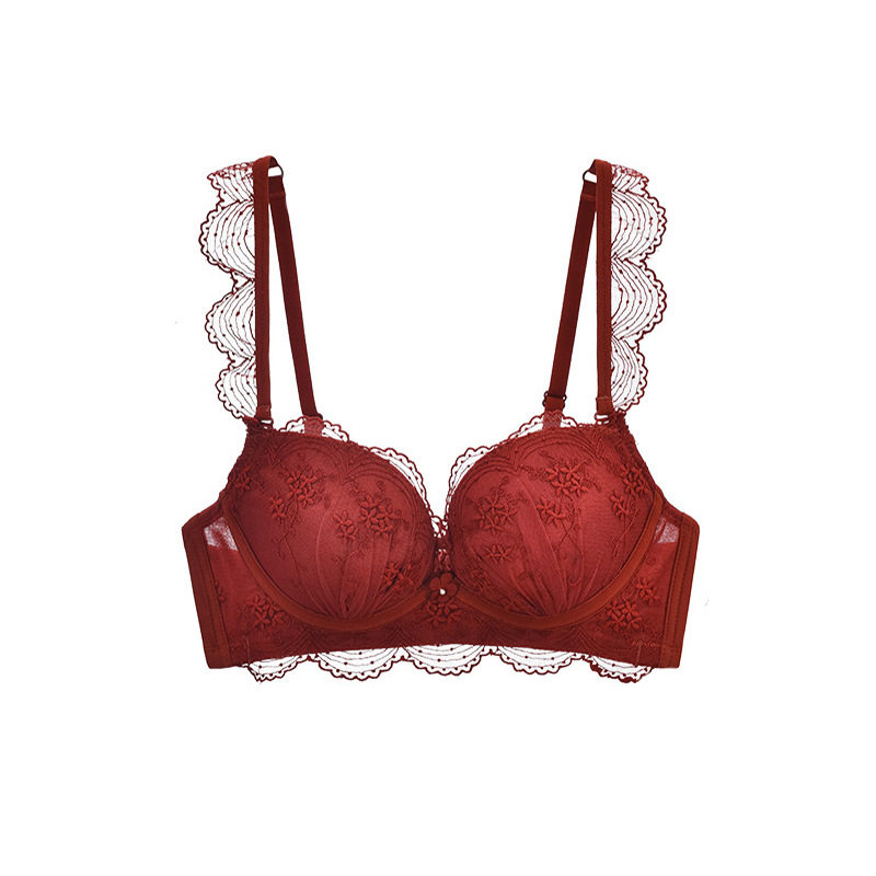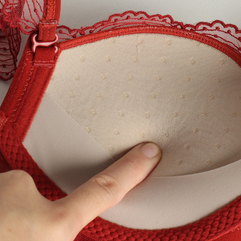 Underwear women's small chest gathered red sexy lace comfortable breasts wedding bridal underwear set