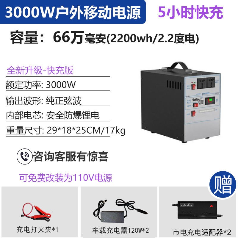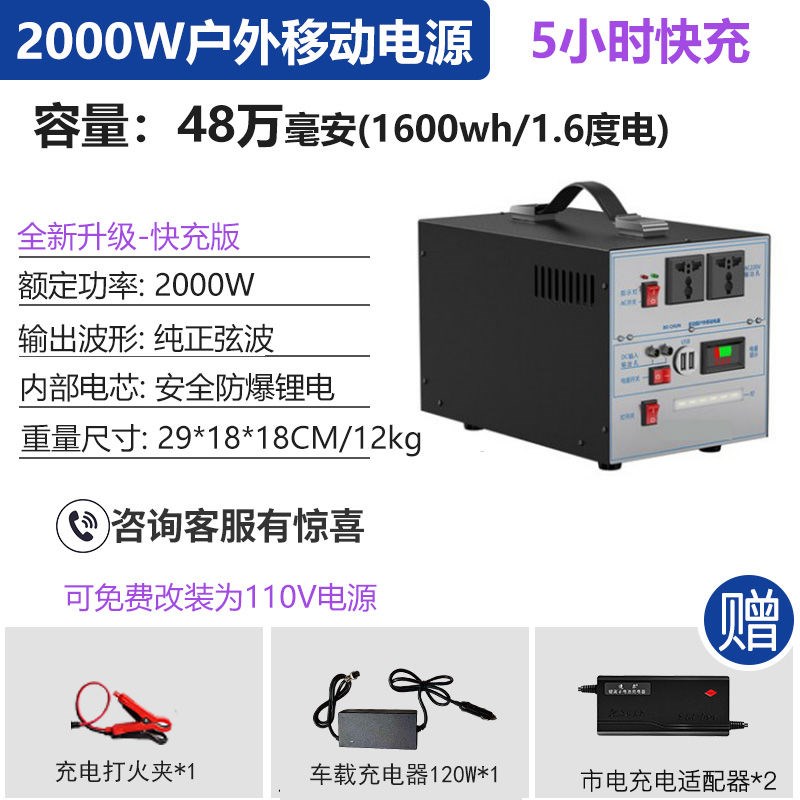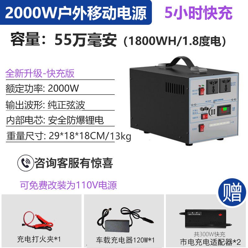 Portable 220V outdoor high-power car 2000W capacity stall self-driving mobile power field lithium battery