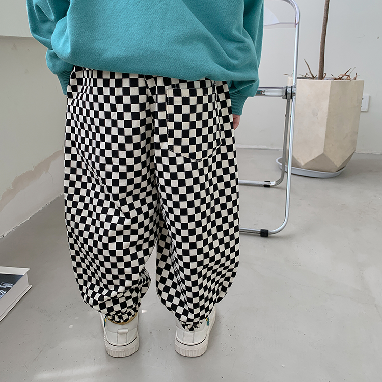 Yiyima Boys Checkerboard Plaid Pants Spring New Children's Pants Baby Cotton Loose Casual Pants Trendy