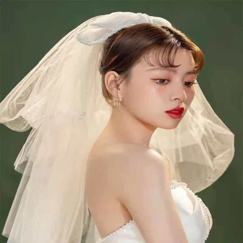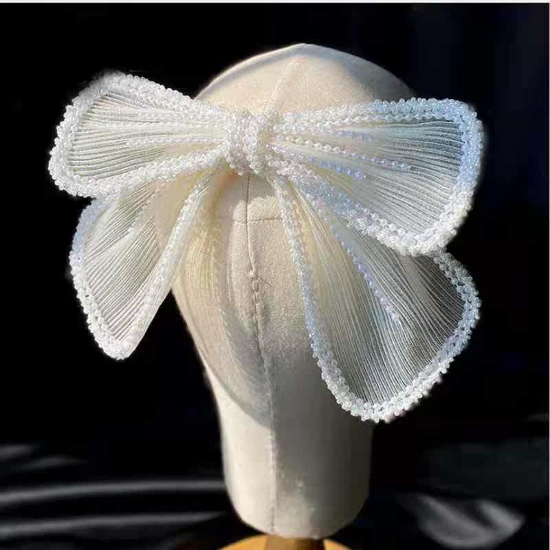 Bridal pearl headdress Bow knot French forest hairpin headdress Wedding dress photo travel and makeup accessories