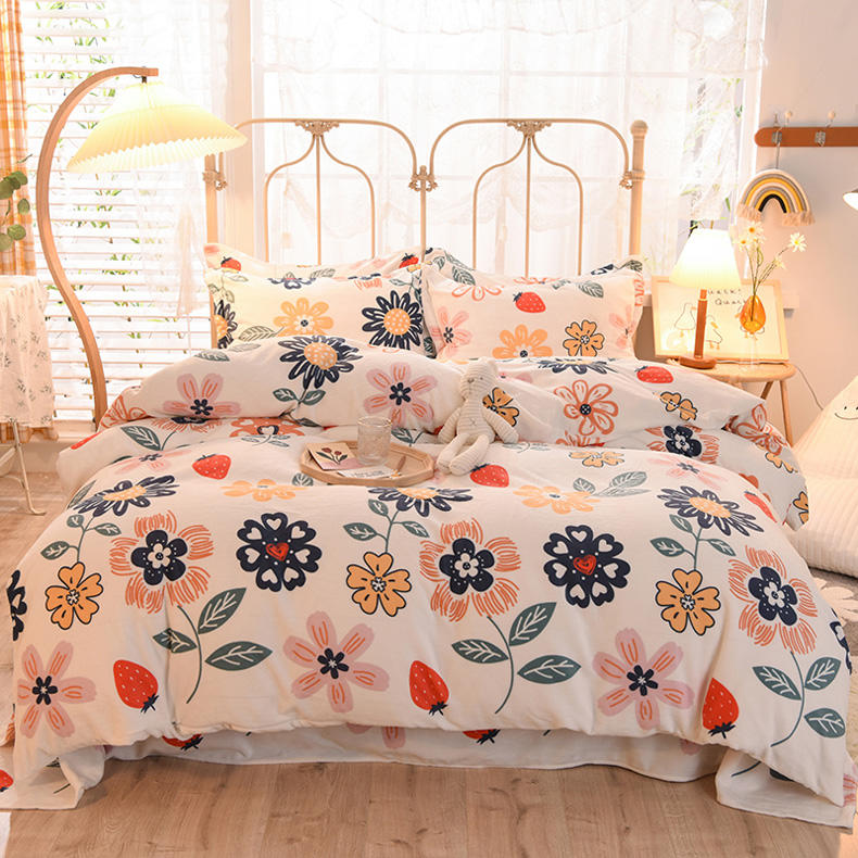 (100 people inspection) winter milk velvet four-piece set sheet double-sided velvet thickened warm printing four-piece set