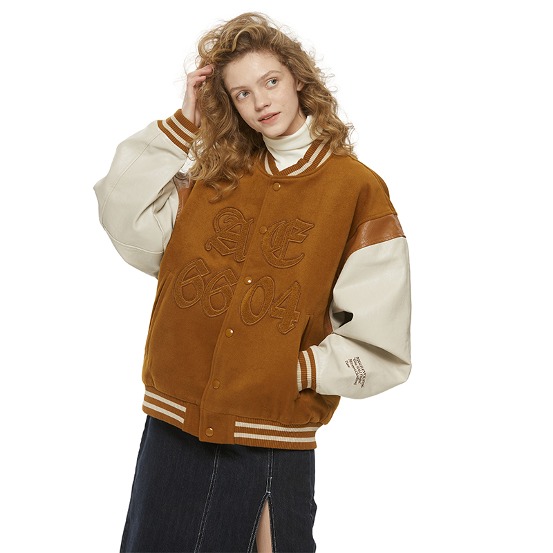 AE6604 Spring Autumn American Retro Baseball Uniform Brown Loose Casual Clip Cotton Embroidered Short Jacket Jacket Woman Tide-Taobao