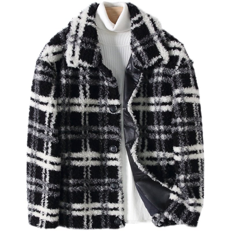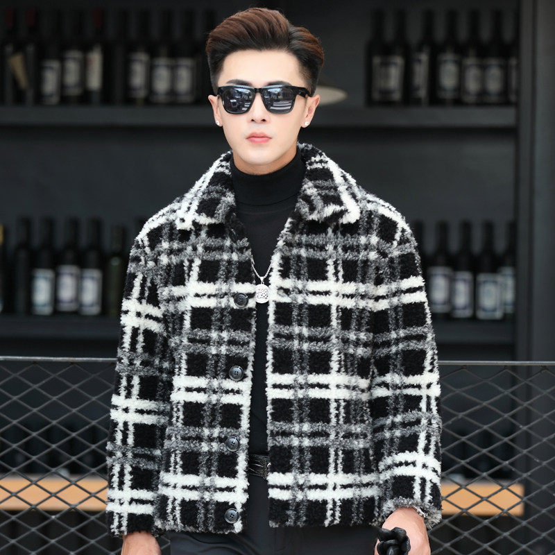 2022 new sheep cut suede jacket male winter leather grass jacket trendy fur integrated latched lamb fur coat Korean version