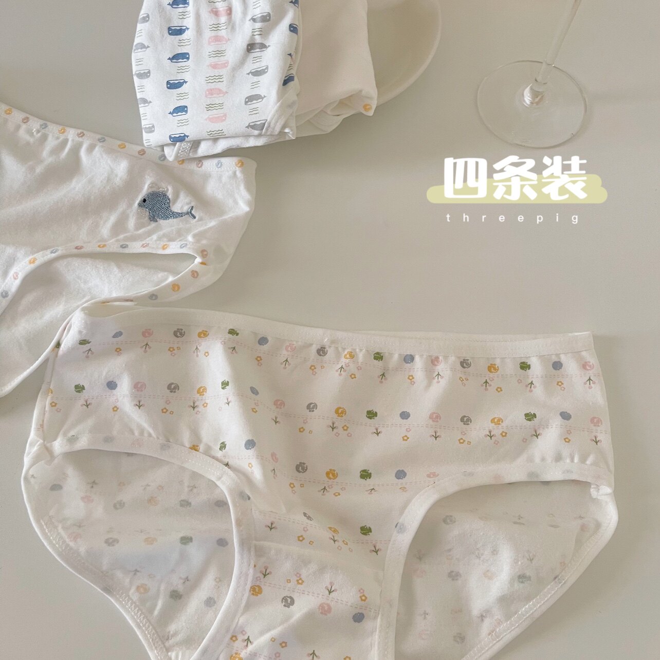 Whale knocks cute cotton simple sweet and sweet broken girl four combined underwear
