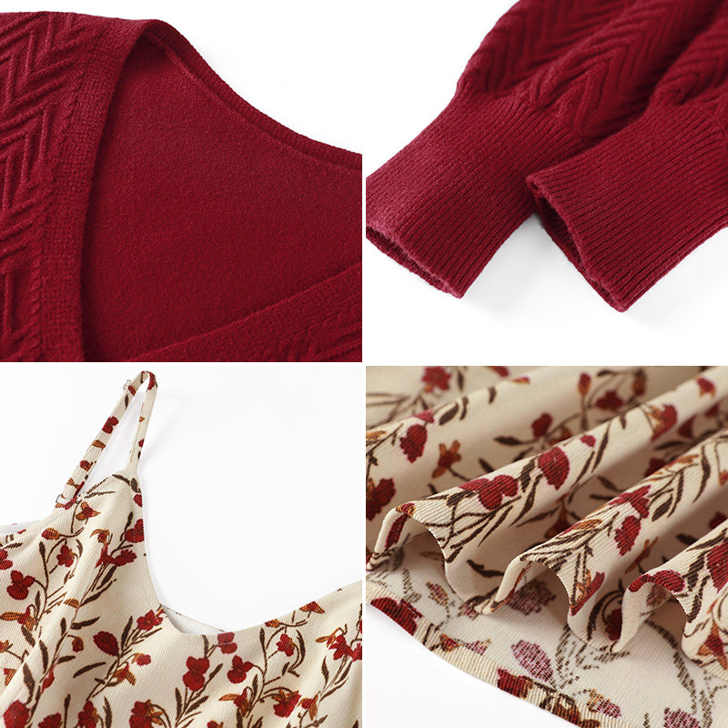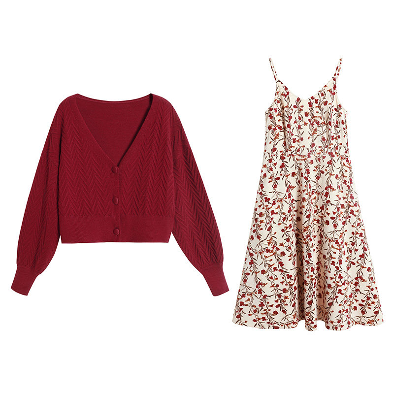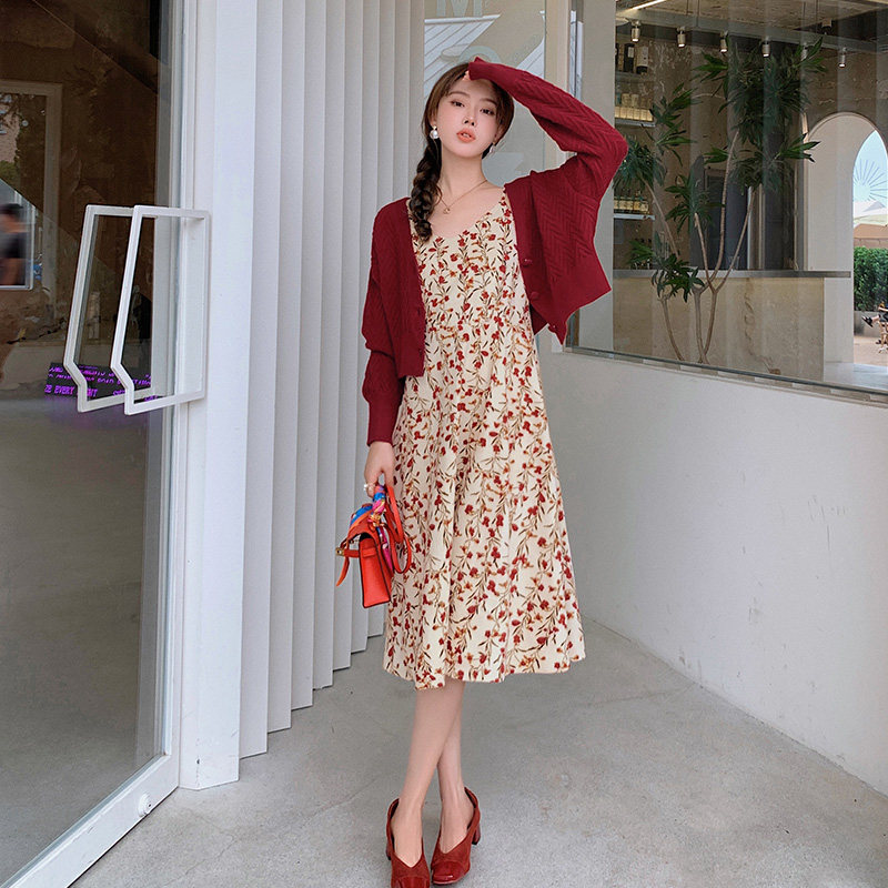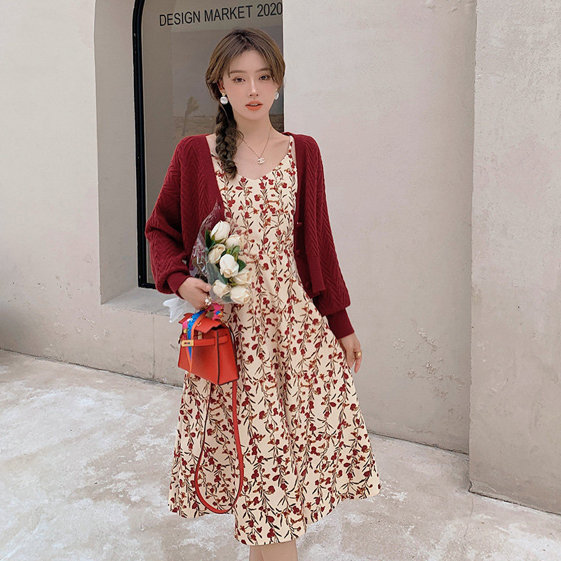 Blue Language Great Size Women's Dress Fat Sister Mm Stitch Cardiovert Flowers Harness Foreign Dress 2022 Spring New Temperament Two Sets
