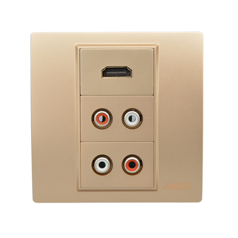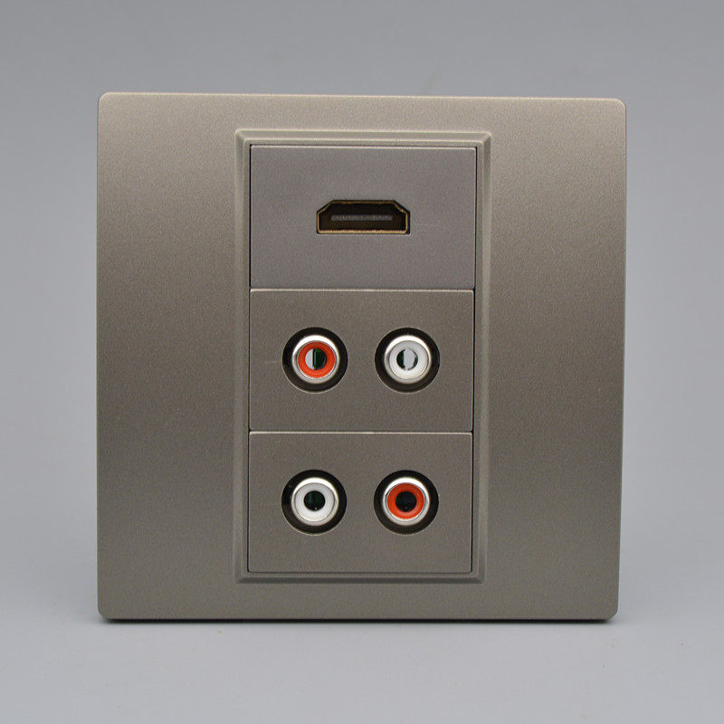 High Definition Dual Audio Socket 86 Type 2 AV Free Welding Red White Double Holes Lotus Head HDMl TV Wall Panel