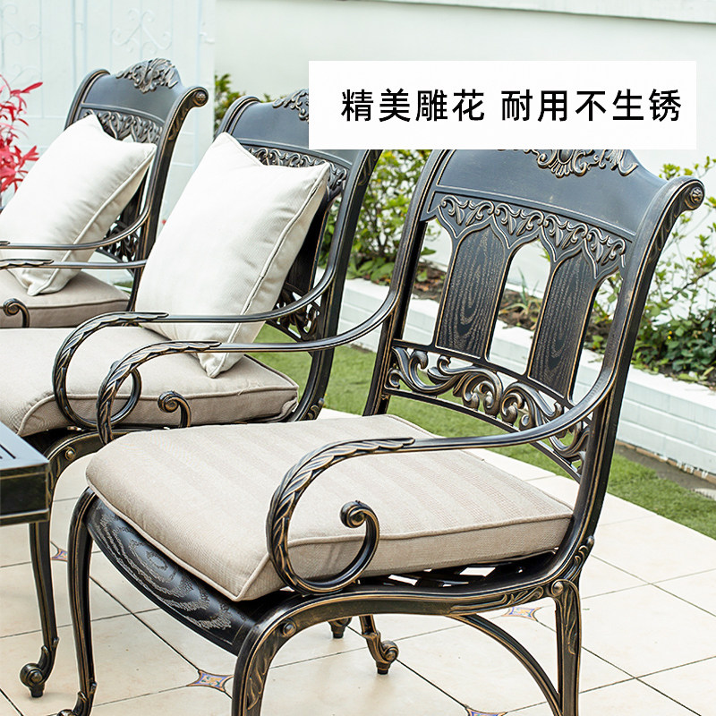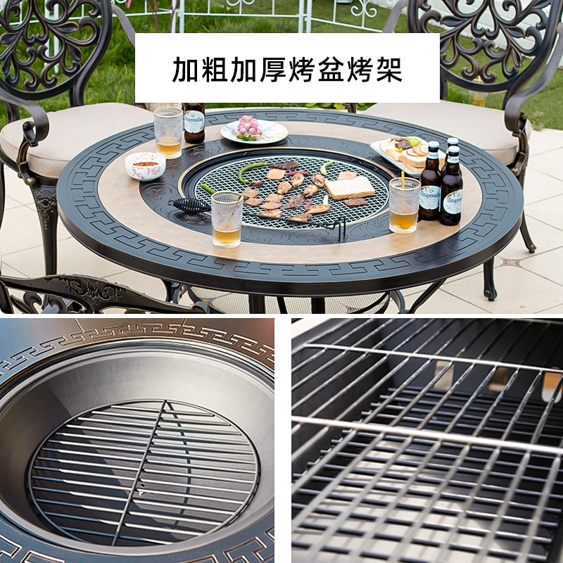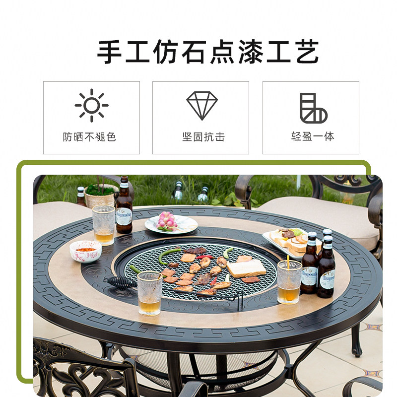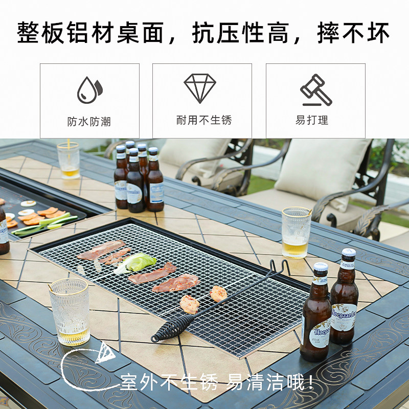 Outdoor barbecue tables and chairs courtyard cast aluminum balcony open-air garden aluminum alloy imitation marble long table electric grill charcoal grill