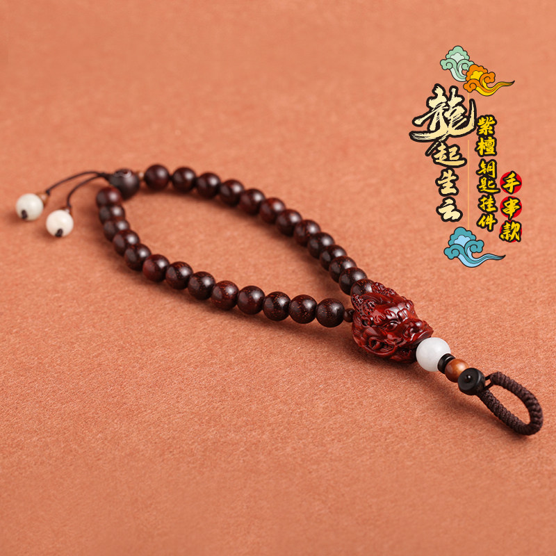 Purple Sandalwood Dragon Head Short Beads Purple Sandalwood Tap Hand Strings Purple Sandalwood Head Short Beads Purple Sandalwood Tiger Head Bracelet With Lightning Strike Wood Dragon Indulger Handstring
