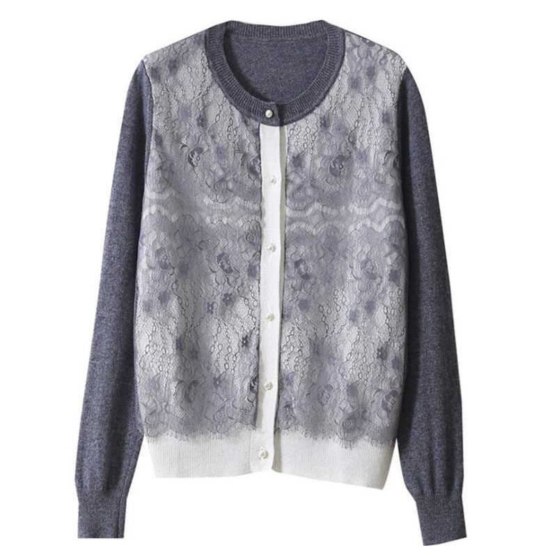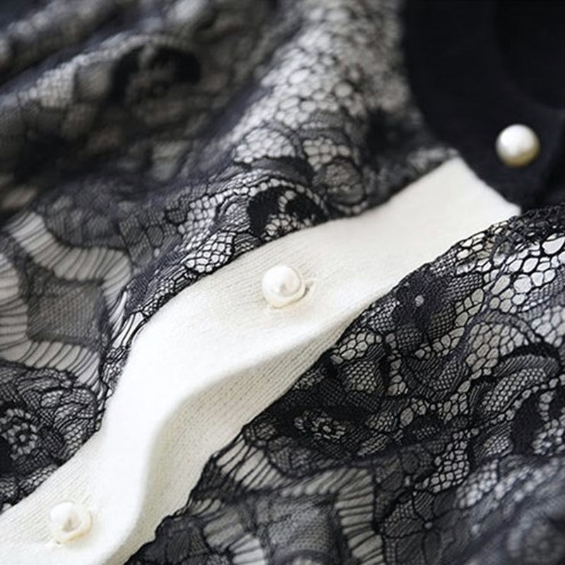 Wool knitted open shirt spring 2023 new long sleeve French temperament lace hollowed short fragrance coat