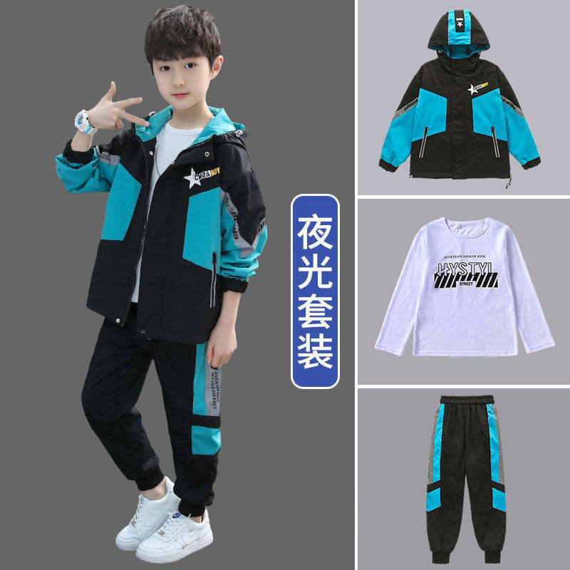 Children's clothing boys' autumn suits 2022 new middle and large children's sports luminous clothes boys spring and autumn two-piece suit
