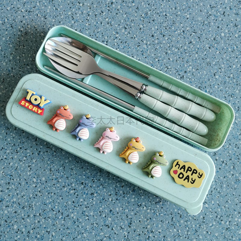 Japanese girls tableware three pieces of stainless steel portable box cute cartoon student chopstick suit children