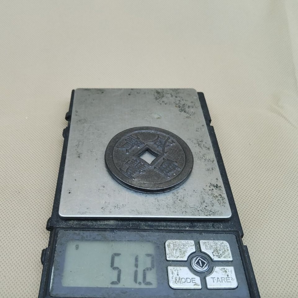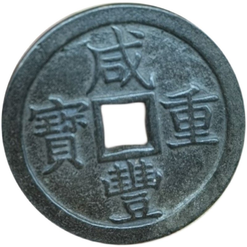 Ancient play numismatic bronze money collection Qing Dynasty Xianfeng Heavy baby Quan Bureau When 50 ancient coins black lacquered paste for the afterlife