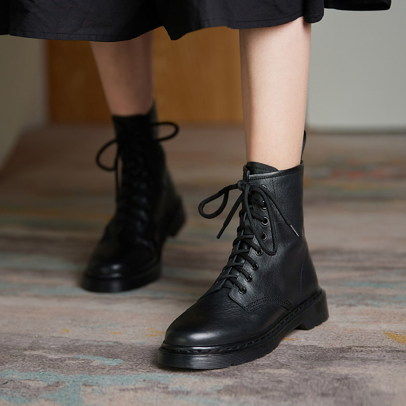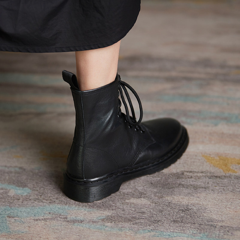 Martin boots Inn Wind 2021 Autumn winter new gush genuine leather black boots children 100 hitch flat flat-bottomed short boots