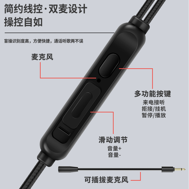 Normal headset sports headset gaming headset mobile phone wire control headset android wired headset