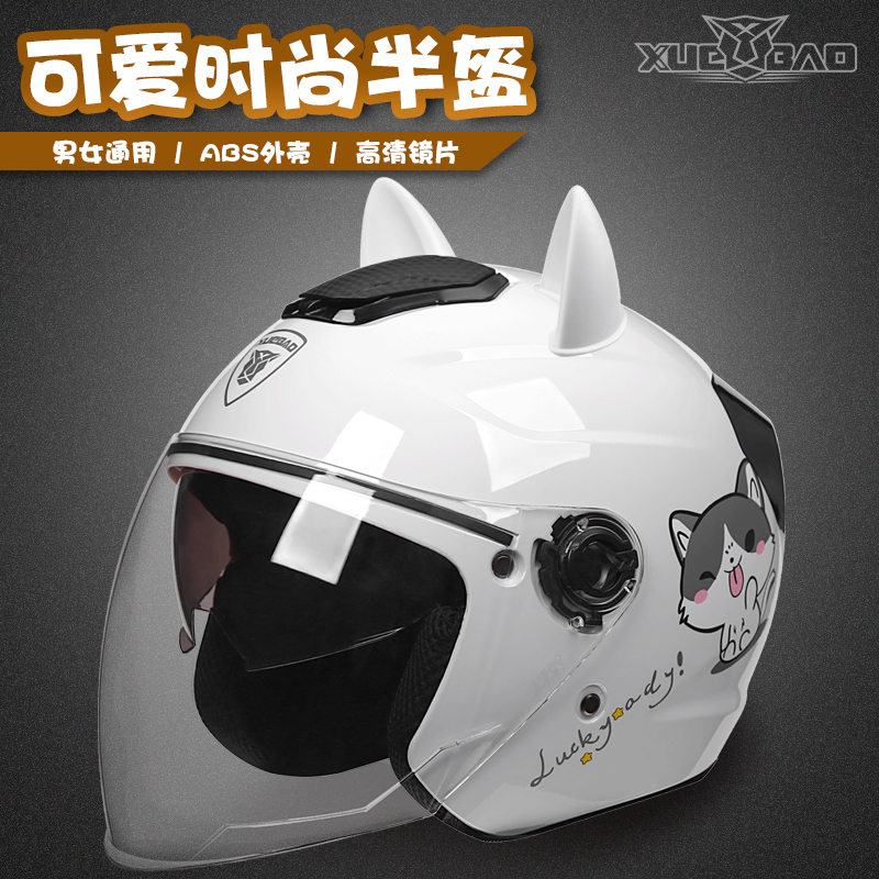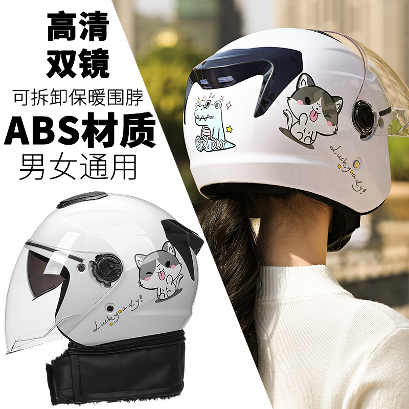 3C certified battery electric car helmet men's and women's double mirror four seasons autumn and winter warm half helmet cute helmet