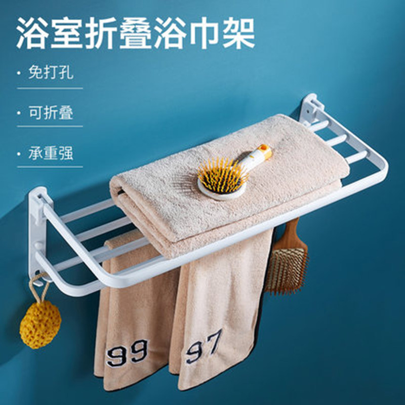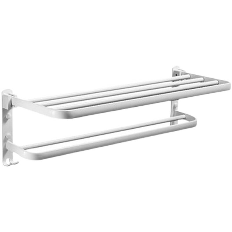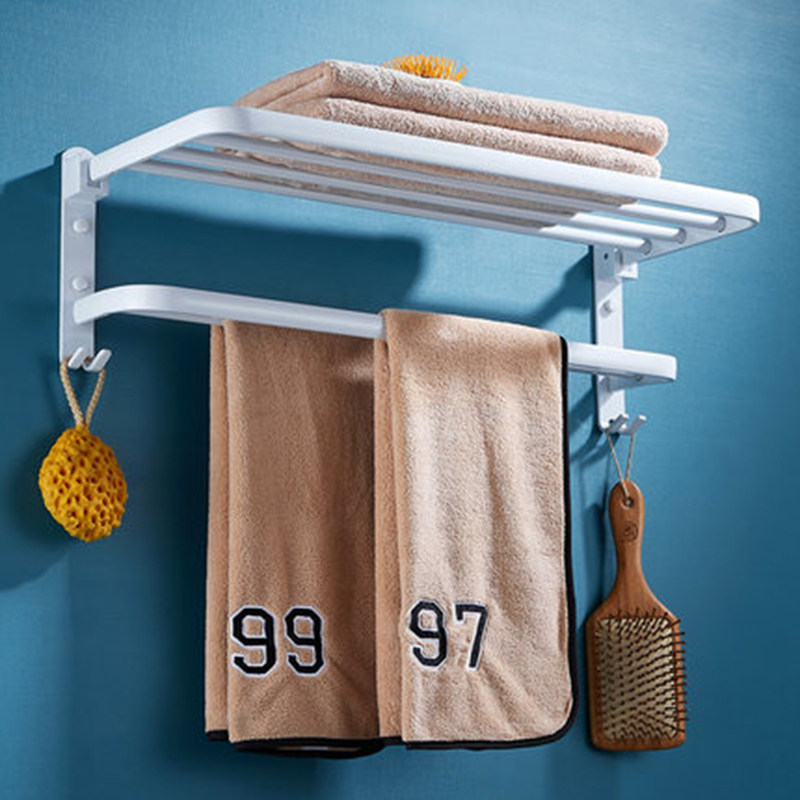 Towel Rack Space Aluminum White Free Punch Makeup Room Bathroom Shelterfold Bath Towels Rack Double-Lever Towels