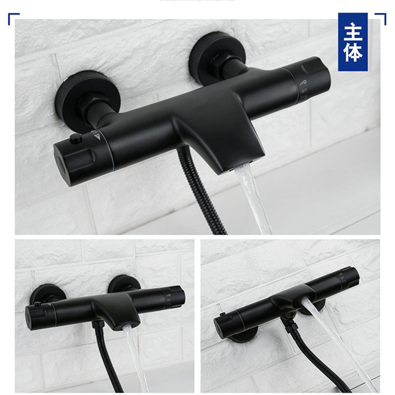 German thermostatic bathtub faucet cylinder side full copper wall-mounted black surface mounted simple shower shower hot and cold set