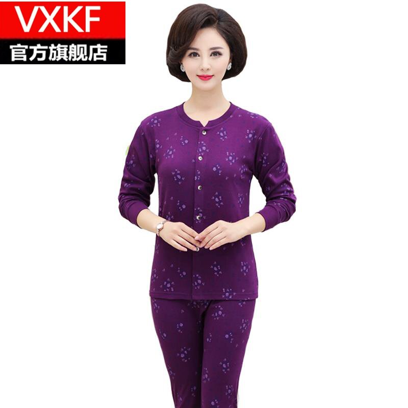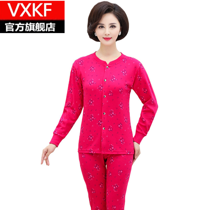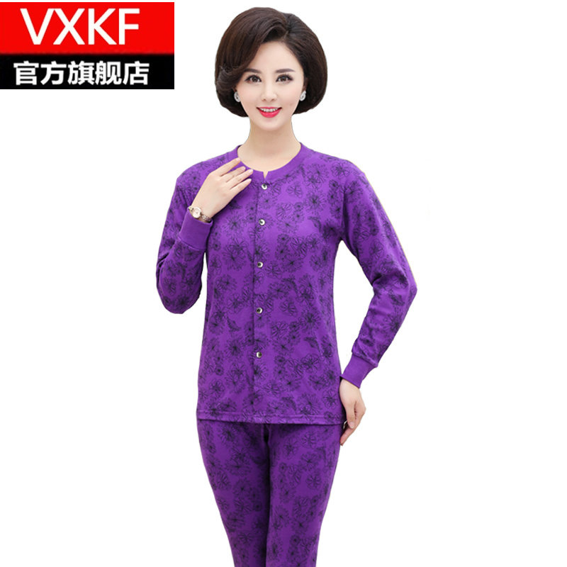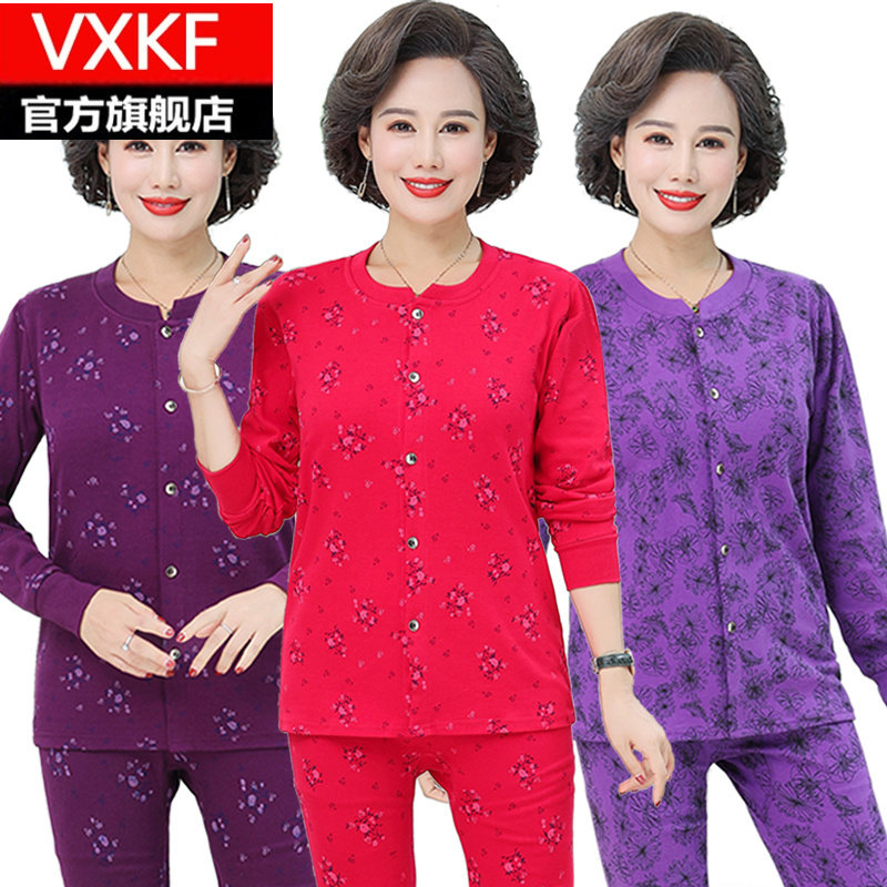 Middle-aged and elderly cotton cardigan autumn clothes long johns suit mother thin section thermal underwear cardigan large size cotton sweater women
