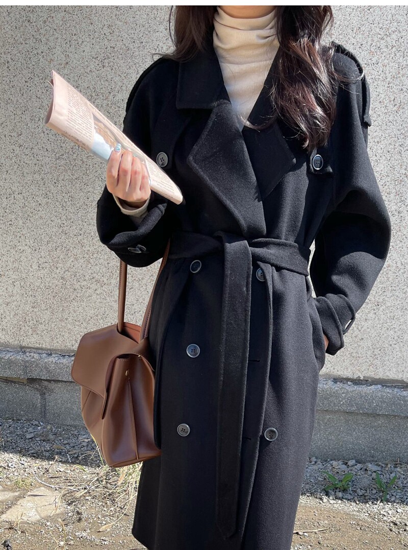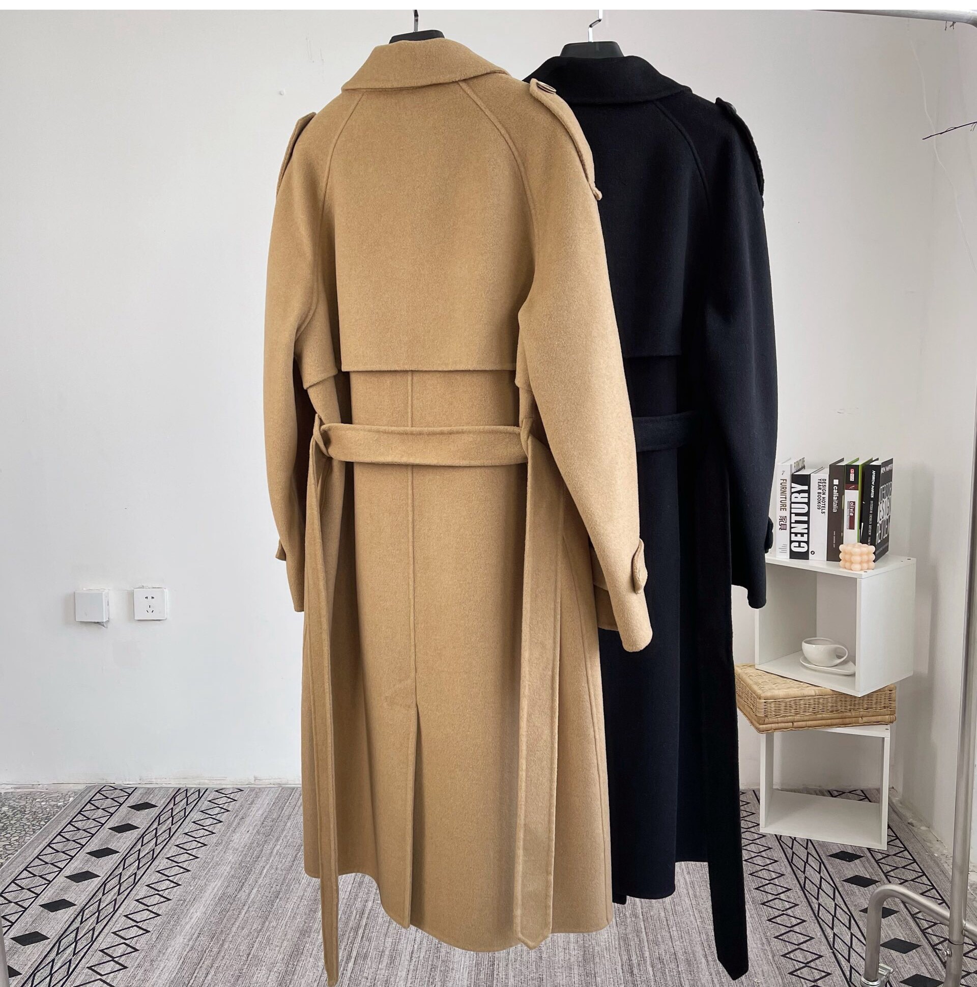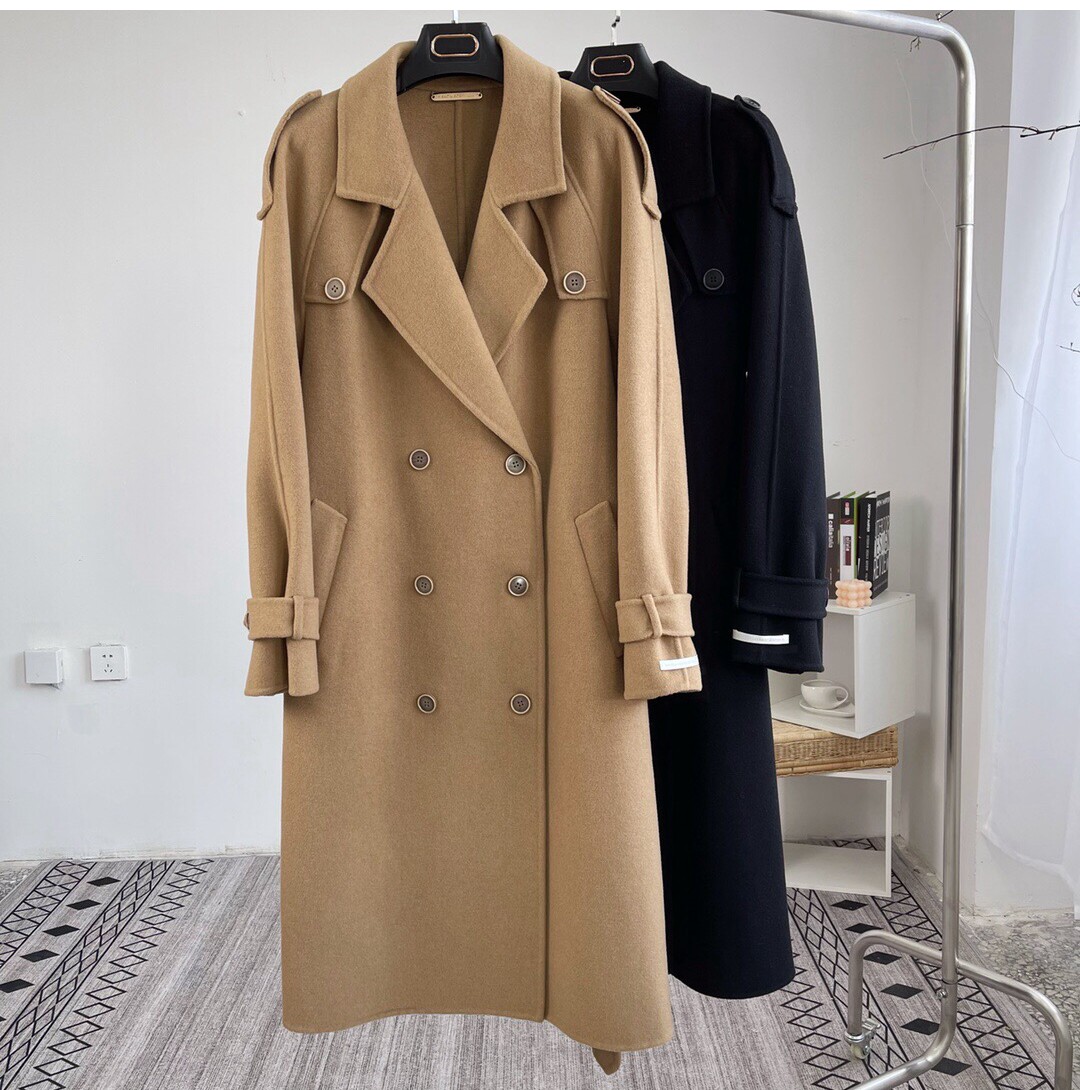 Double face cashmere big coat woman medium long version 2021 new Korean version shoulder chapter loose double-row buttoned camel hair coat