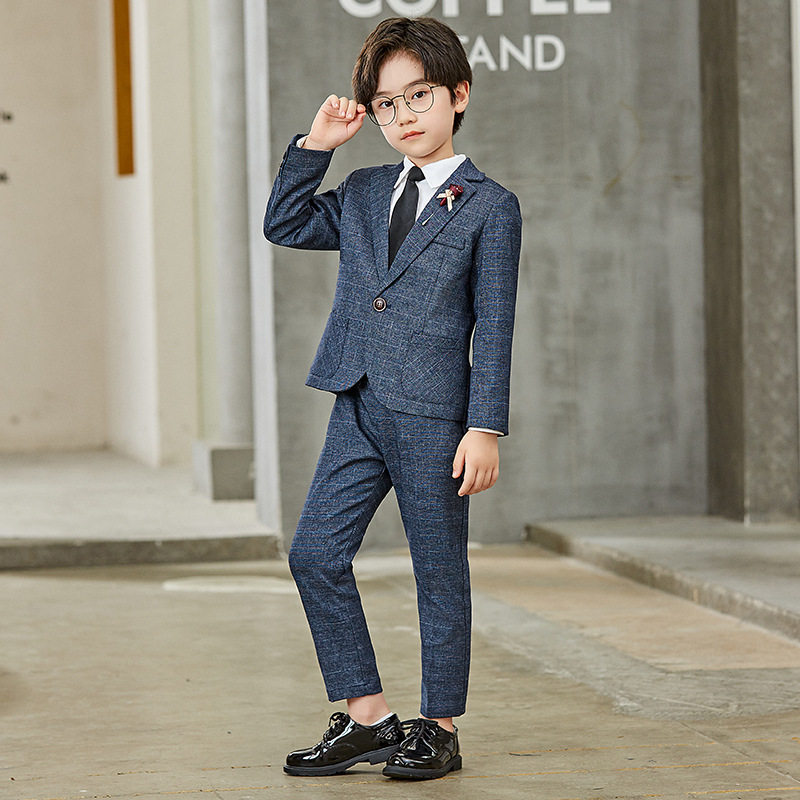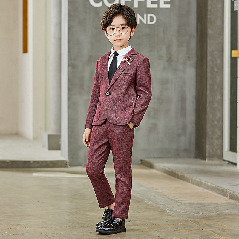 Korean version of boys' suit two-piece suit 2021 autumn and winter new children's handsome suit suit British dress foreign style trend