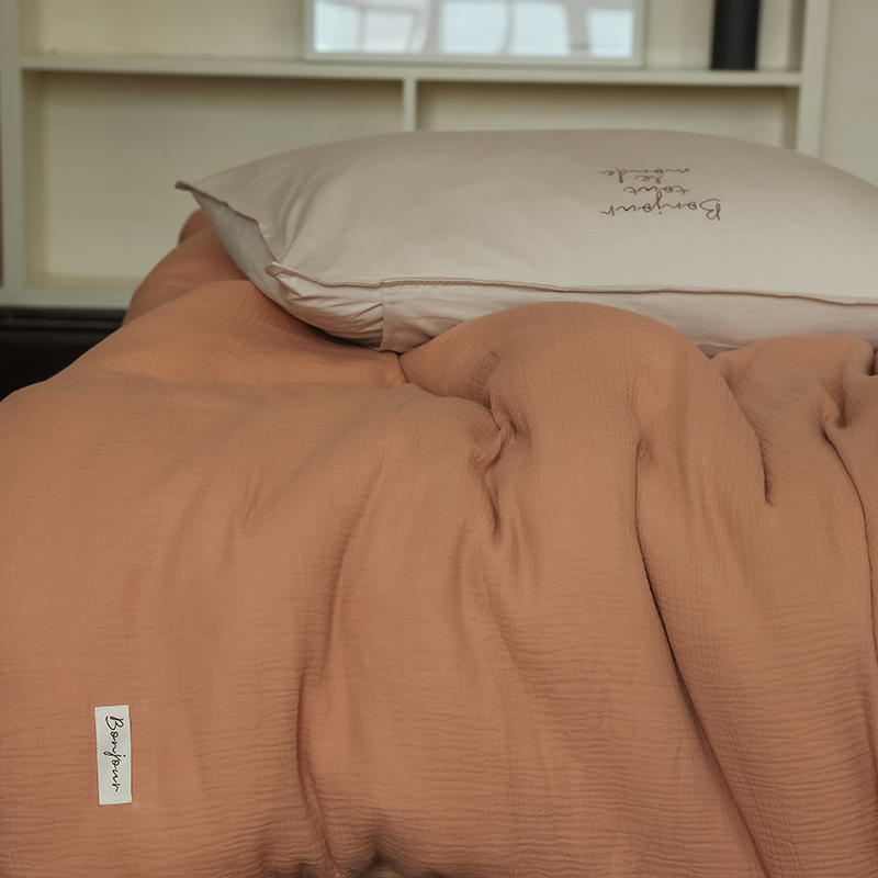 100 light and luxurious yarns 4 pieces of pure color full cotton high-end gauze cover cotton yarn simple wind pure cotton bed with supplies
