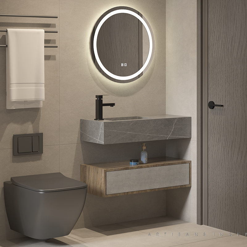 (A) 60cm single hanging basin 60cm single sink 50cm round mirror 60cm single sink 50cm luminous round mirror 60cm single sink 60cm base cabinet 60