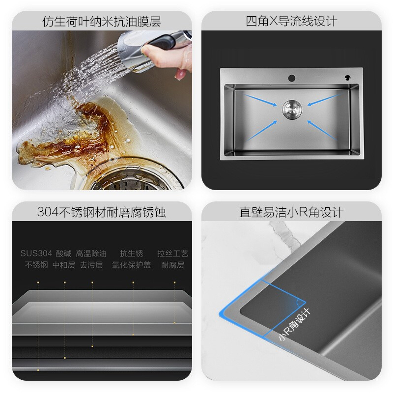 Nine Huang Stainless Steel Single - tank Nanocoating Single - tank Pumped faucet Hand Single Single Groof Thickness 06158