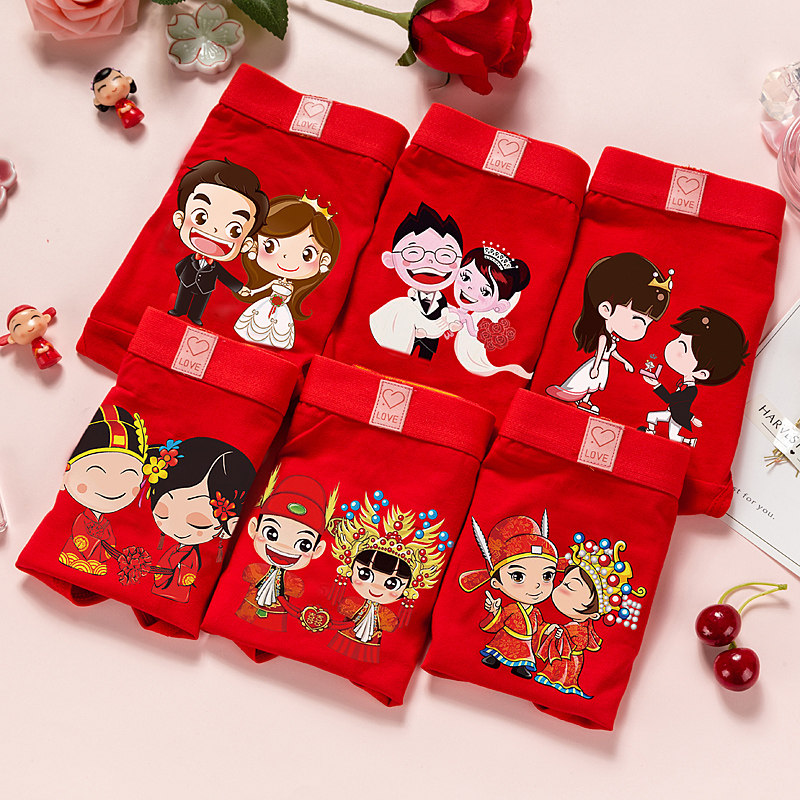 Big red briefs wedding couple a couple of festive items New wedding gifts for newcomer Practical creative pure cotton suit