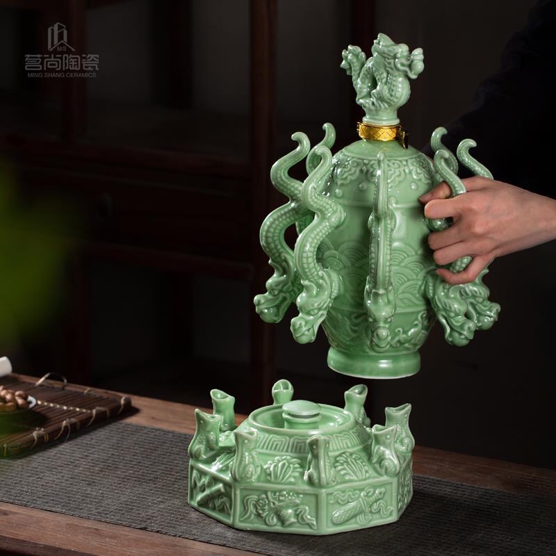 Ceramic bottle collection 9999 wine cabinet gift box five pounds of classic national Geosaur Kowloon split large wine bottle high 43