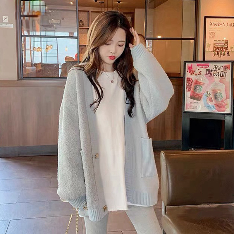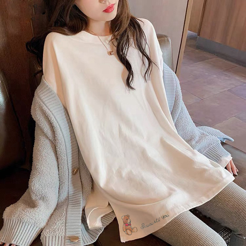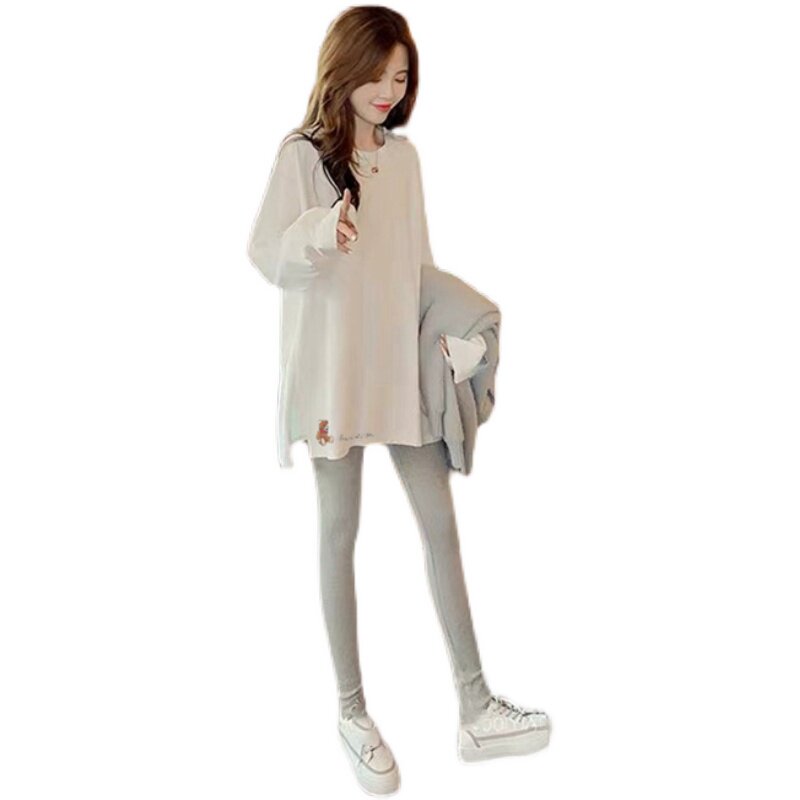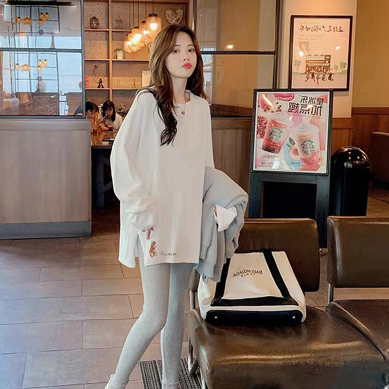 Pregnant woman inner lap pants fall outside wearing open fork long sleeve blouse Han version loose large size small bear pure cotton T-shirt design sensation