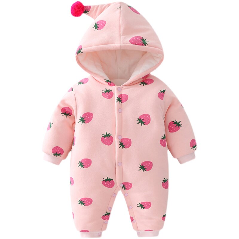 Newborn baby clothes autumn winter thickened outside pure cotton one-piece clothes female baby clip cotton one-piece dress cotton clothes cute winter dress