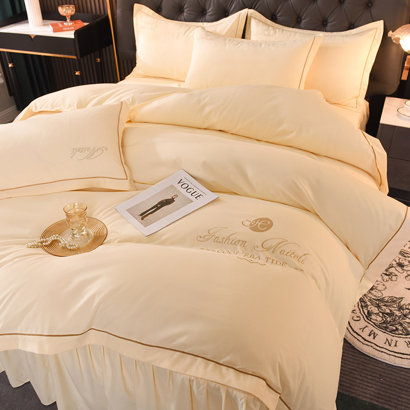 Net red skirt four-piece set cotton cotton princess style French style single quilt cover skirt naked sleeping mule simple girly heart
