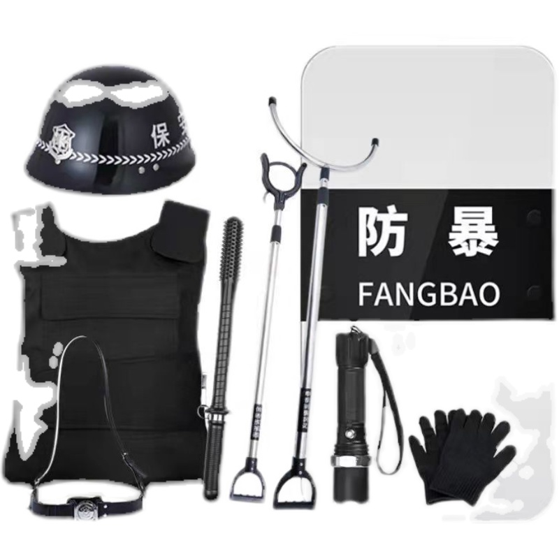 Two pieces A (steel fork shield) Three sets A (safety helmet anti-stab clothing rubber stick) Three sets B (safety helmet shield steel fork) Four pieces of five sets of five sets of six sets of eight sets of fixed riot gear