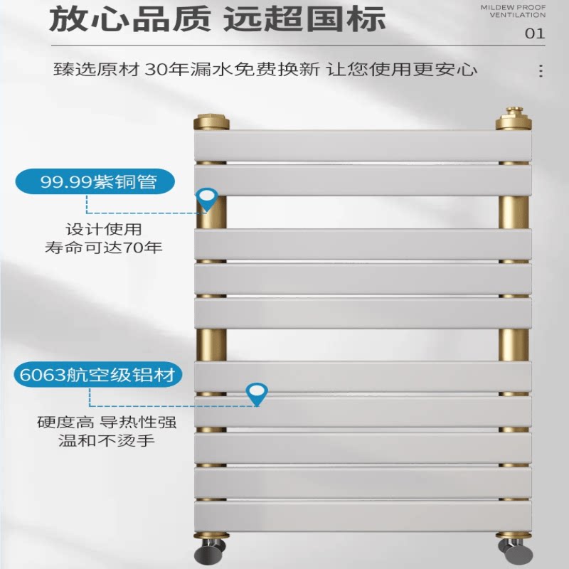 Jingding copper and aluminum bathroom flat panel small back basket radiator home bathroom plumbing wall hanging central heating radiator