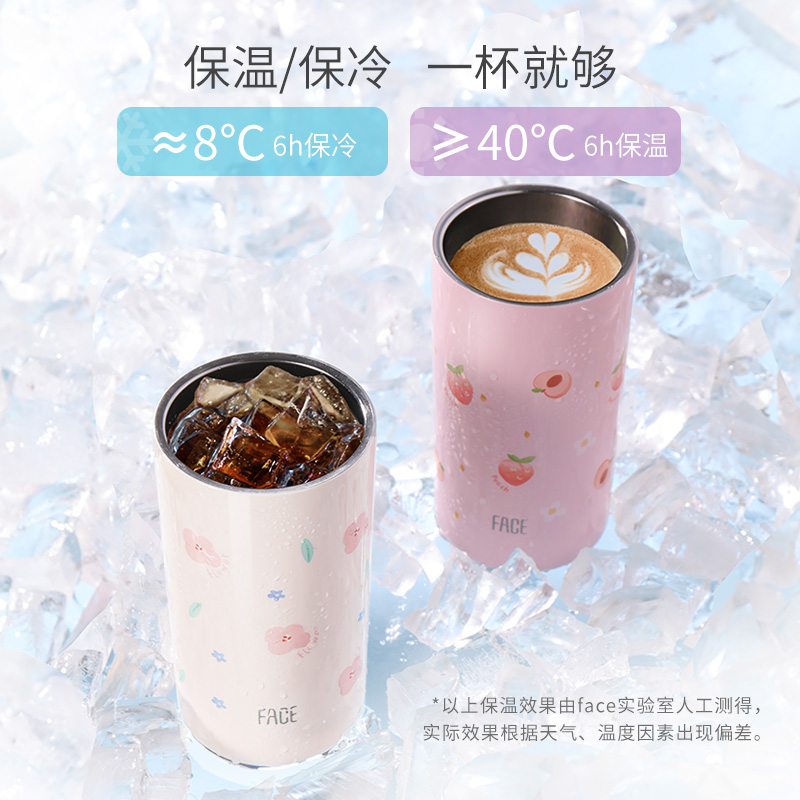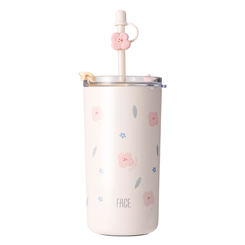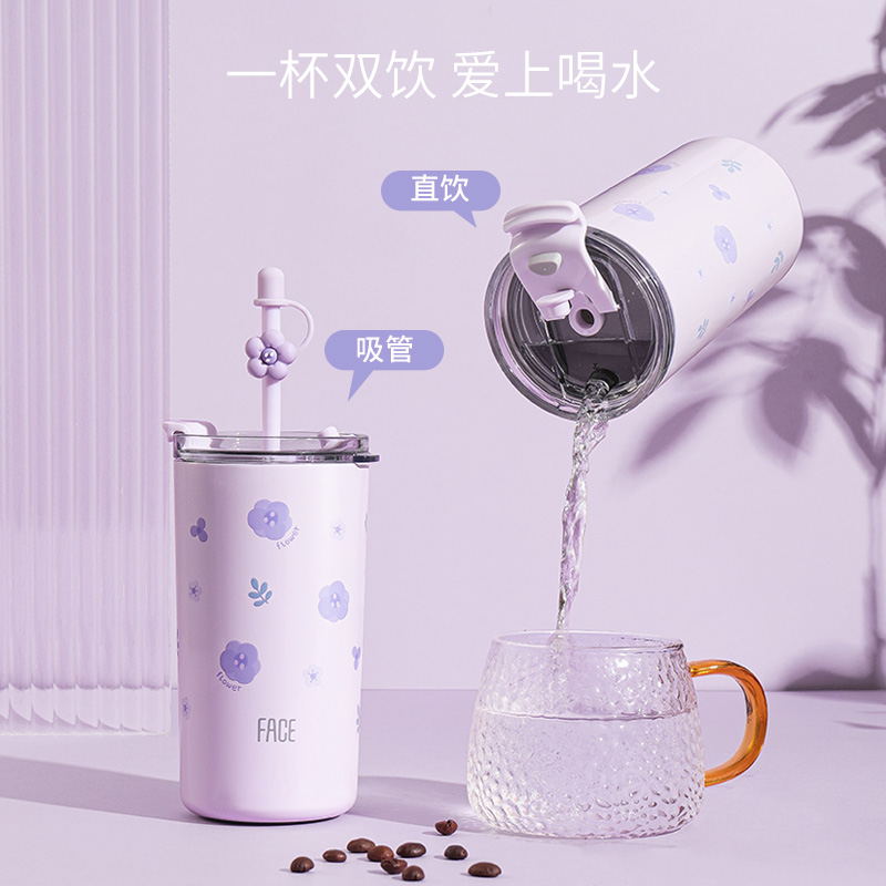 Face with straw thermos cup 316 stainless steel girl heart ins cute simple large capacity dual-purpose portable water cup