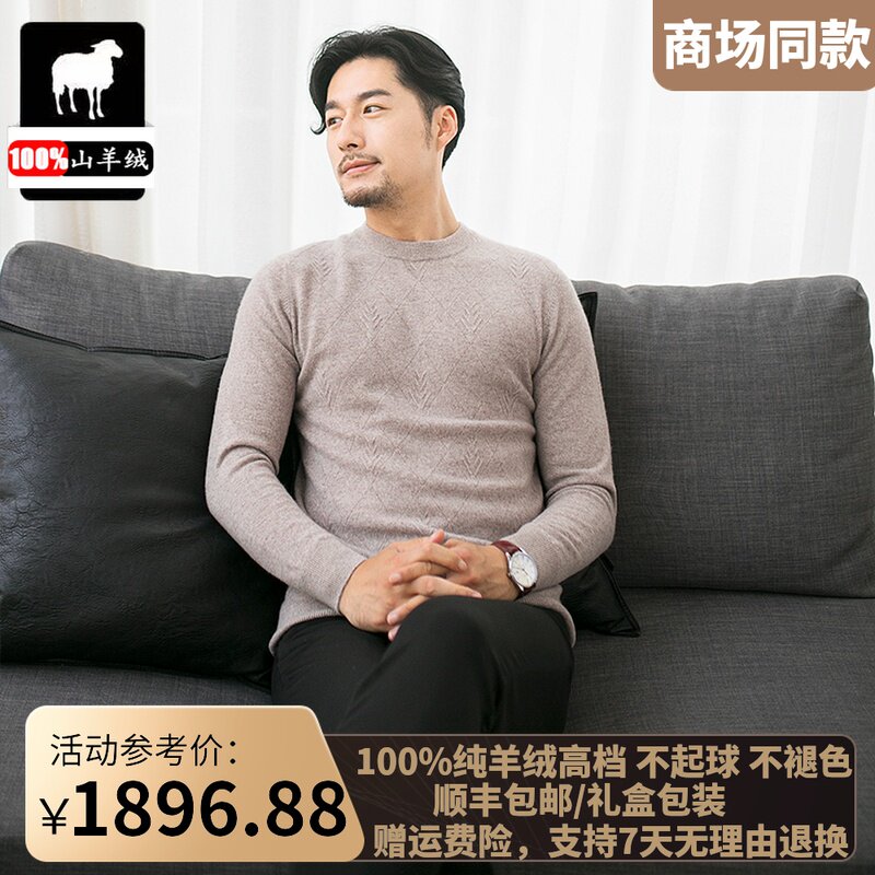 Ordos winter new pure cashmere sweater men's thickened sweater middle-aged casual solid color bottoming sweater
