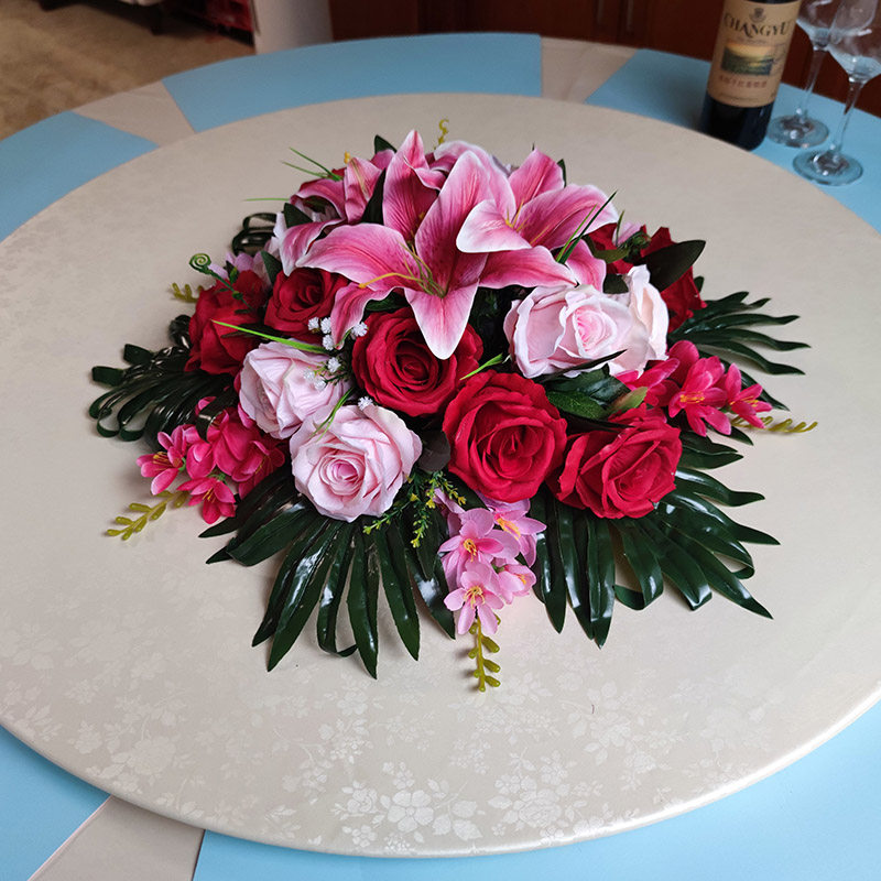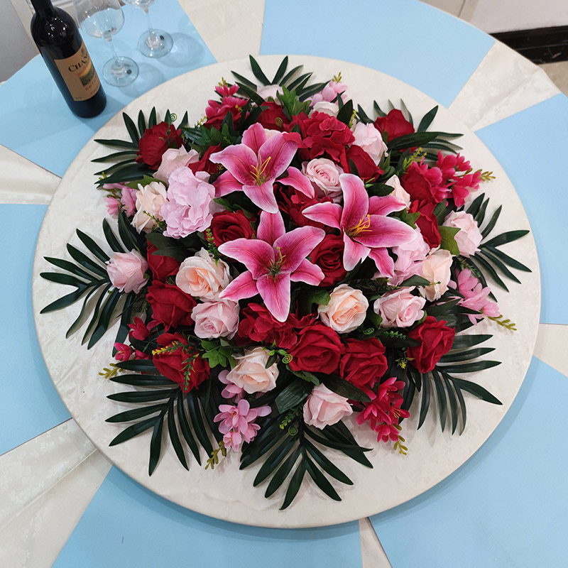 Large round table flower middle flower table flower simulation flower hotel hotel box electric turntable flower fake flower flower arrangement