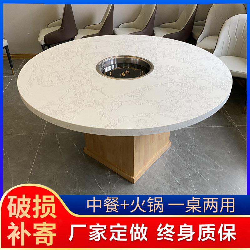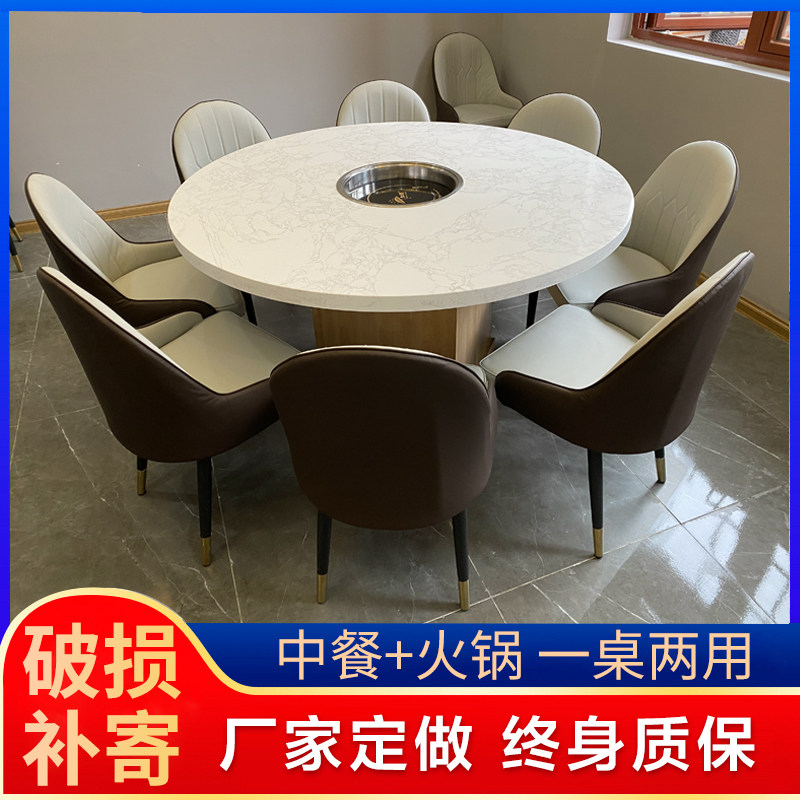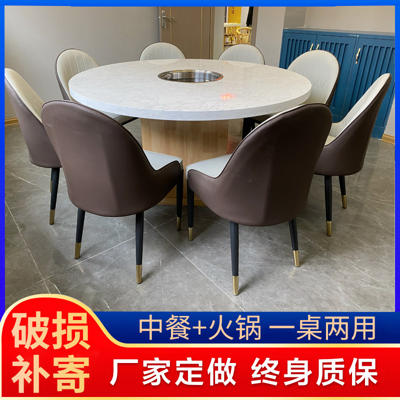 Custom marble hotpot table induction cookers integrated commercial solid wood hot pot table and chairs combined liqueur kitchen hot pot table