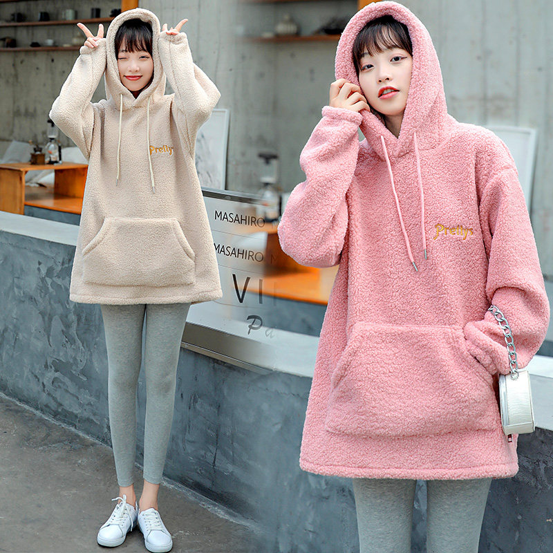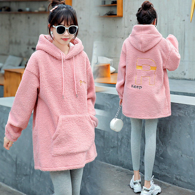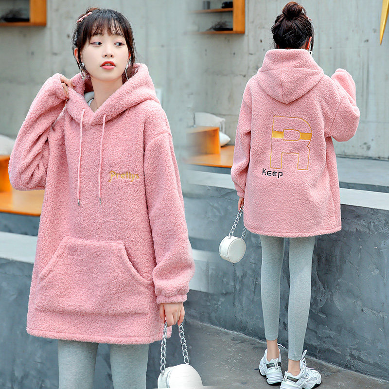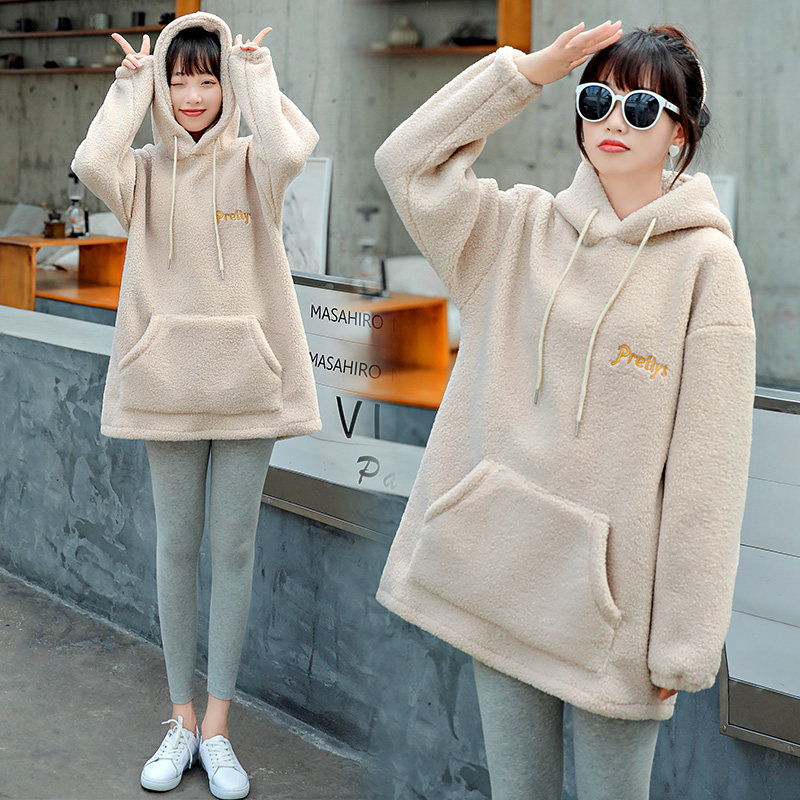Pregnant women's autumn and winter clothes plus velvet thickened sweater women's mid-length top loose large size autumn and winter outerwear suit trendy mother
