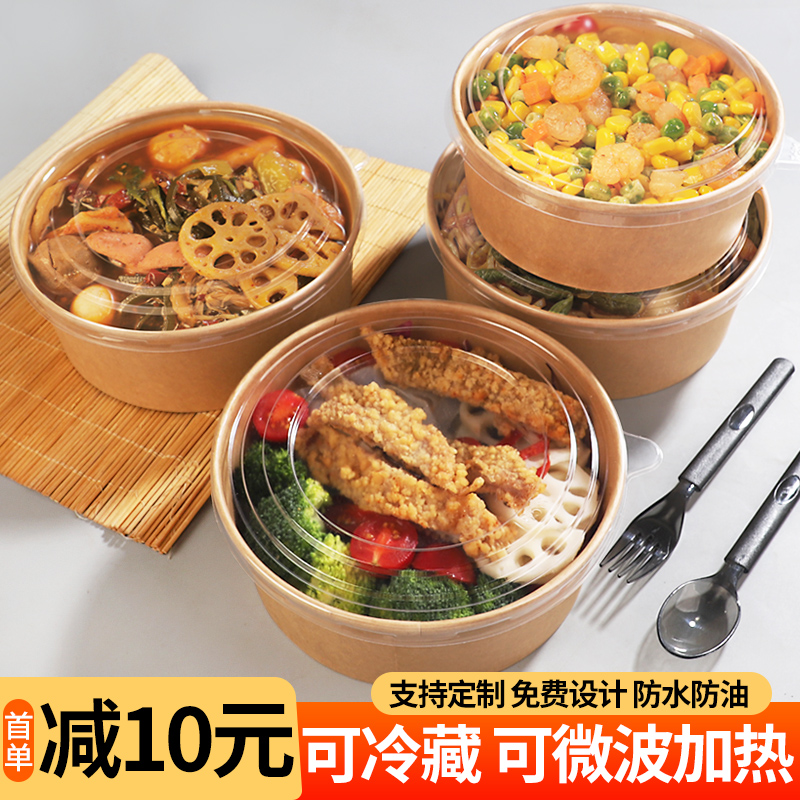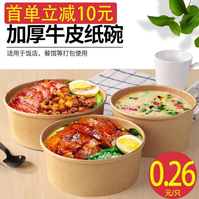 Kraft paper bowl packaging box disposable national tide thickening with lid carton lunchbox soup box lunch box for commercial use