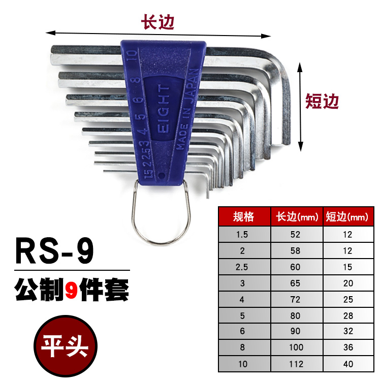 EIGHT Japan Biliary inner hexagon wrench suit RS-6 9 inner hexagon wrench flat head six angular screwdriver