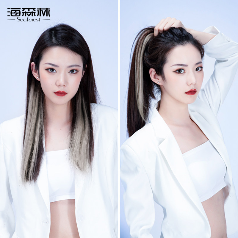Sea Forest Ear Hanging Dye Pixie Ball Real Hair Fake Hair Piece One-Piece, No-Scratched Colored Hair-On-Chip