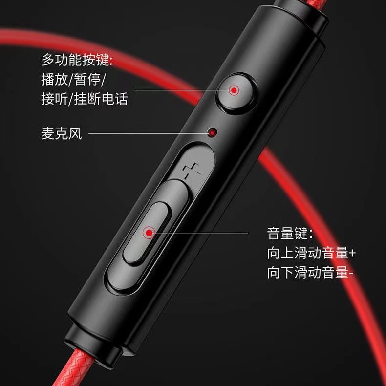 Game Live Eating Chicken K Song Electric Race Sound Argument No Delay Headphones In-ear Style Cable Band Macko Bass With Microphone Mic High Quality Flat Plate Version of Girls