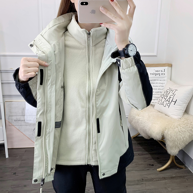 Outdoor jacket men's and women's spring and autumn trendy brand three-in-one detachable waterproof windproof plus velvet thickened winter jacket