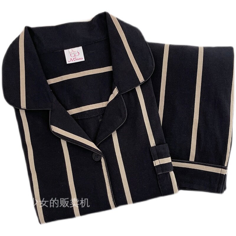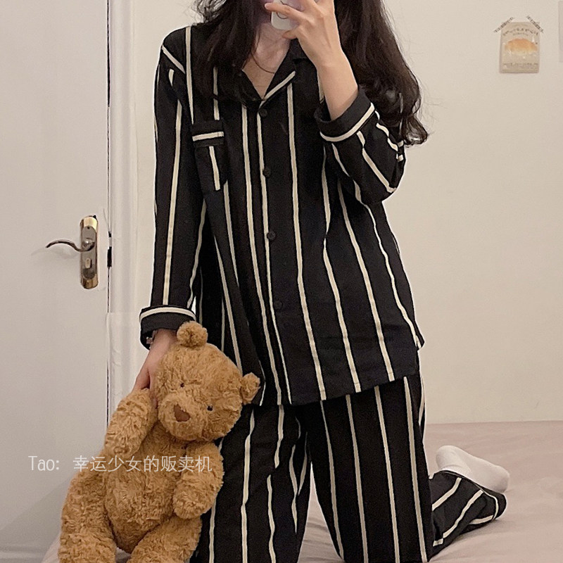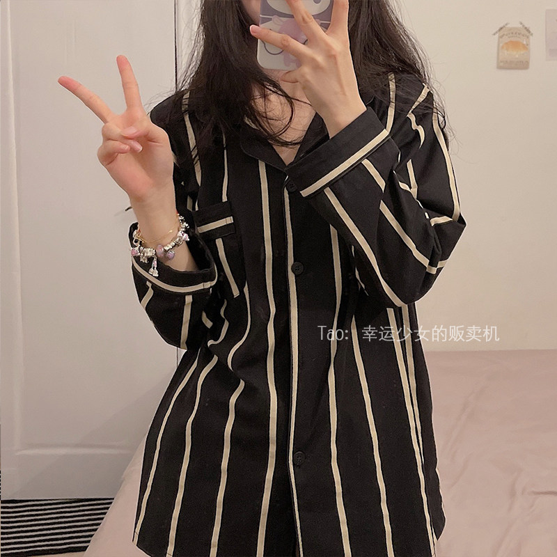 ins brief lukewarm wind ~ blogger's same day family pyjamas women's spring autumn pure cotton suit striped couple family ju clothes